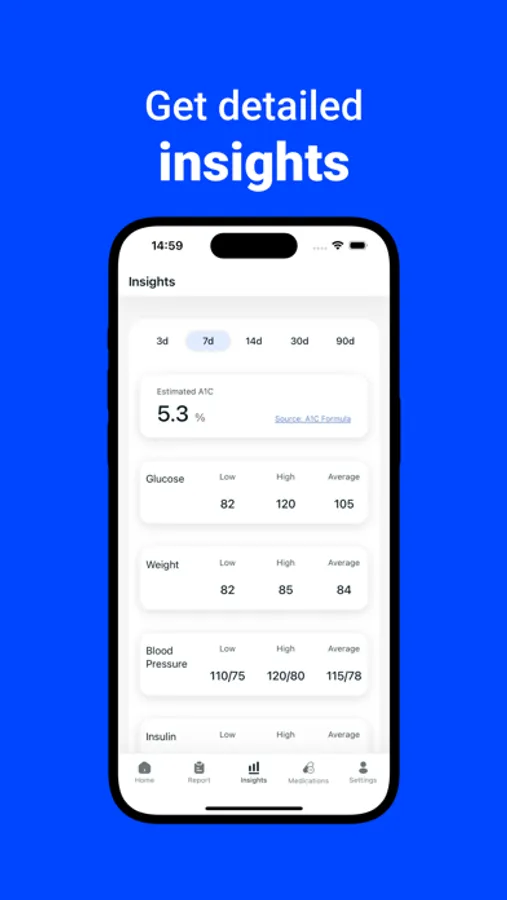 - Insights: View averages for 3, 7 and 14 days to monitor your progress.