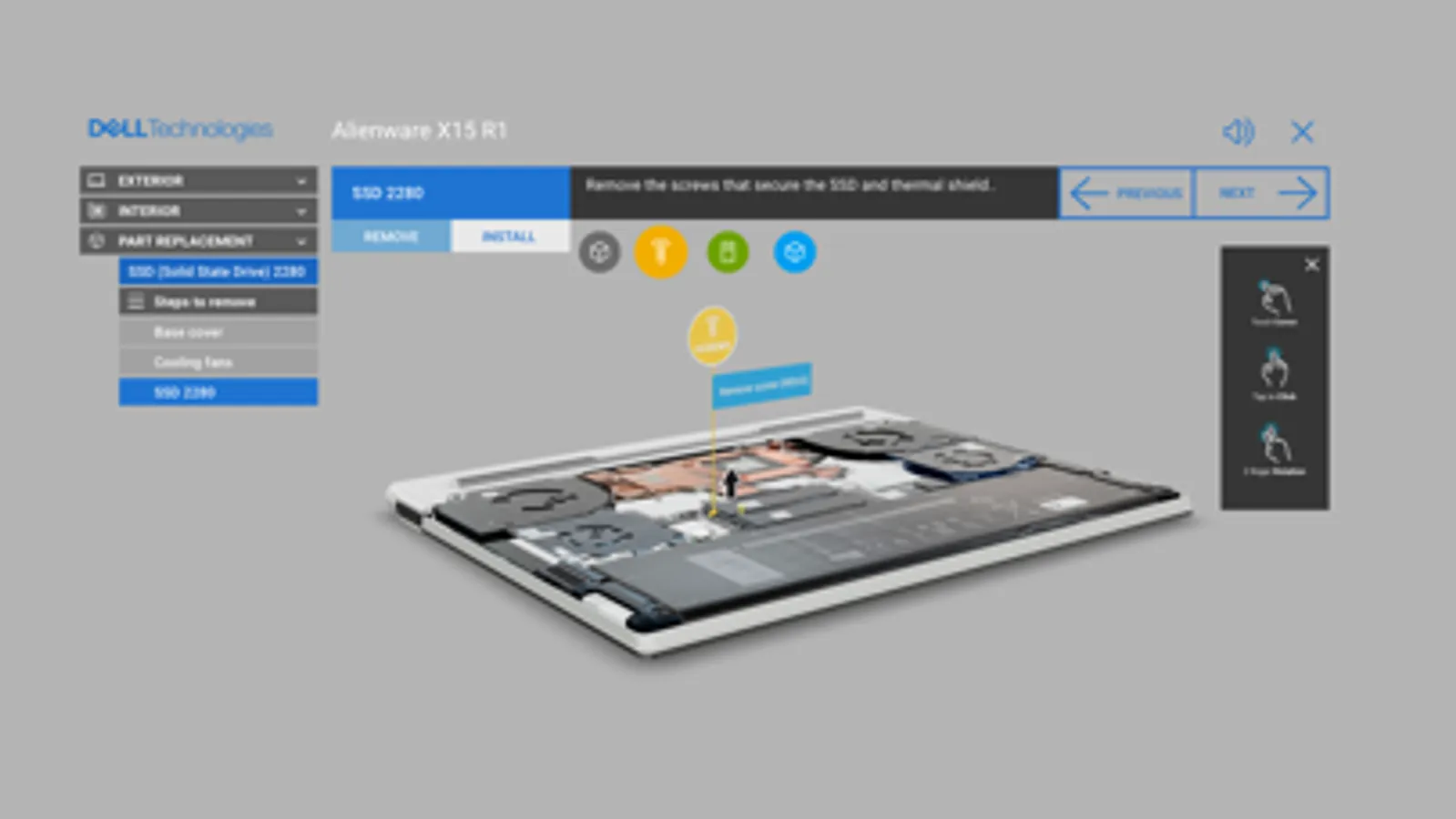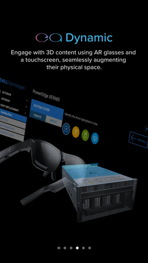 Enables the users to engage with digital 3D content using AR glasses and a touchscreen interface. Its transparent display allows for the augmentation of infographics, models, animations, audio and video with the user’s physical space, enhancing the interactive experience.