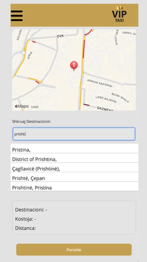 Mobile Application for VIP Taxi Ferizaj, where users can order Taxi for free.