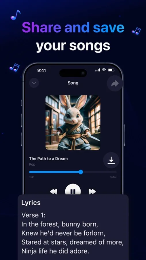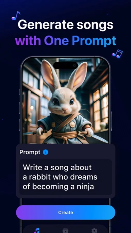 - Convenient Storage: Keep all your creations in one place. Replay your songs whenever you want and share them with friends and family. Surprise loved ones with a unique AI-generated song created just for them!