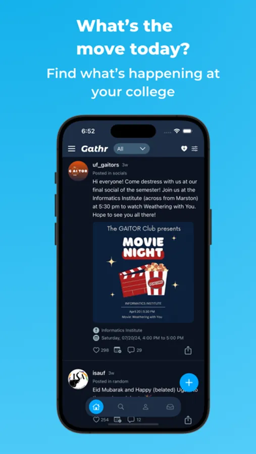 Find what's happening on campus with Gathr. Getting involved has never been easier.