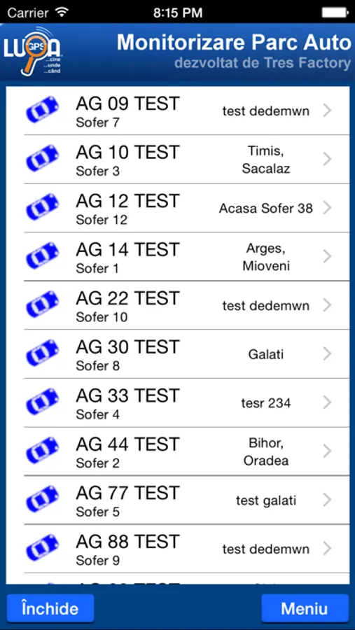 - monitorizarea mașinilor din parcul auto, în timp real