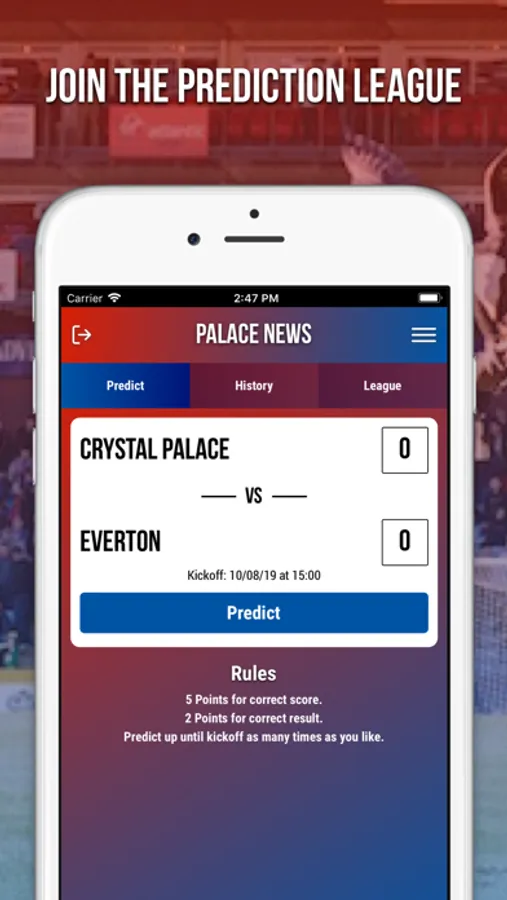 √ Join the prediction league and play the season long game! Compete against other Palace fans by predicting results, earning points and proving you are the biggest fan