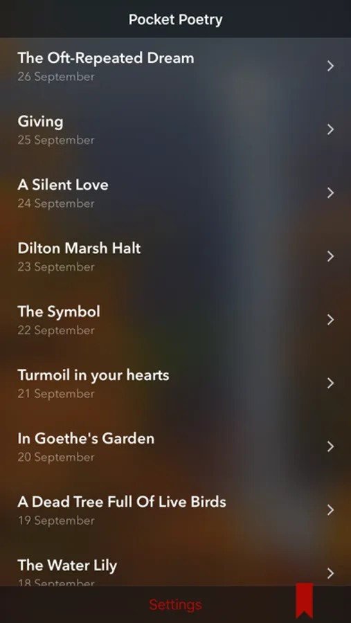 One poem a day, hand-picked and delivered automatically to your iPhone or iPad.