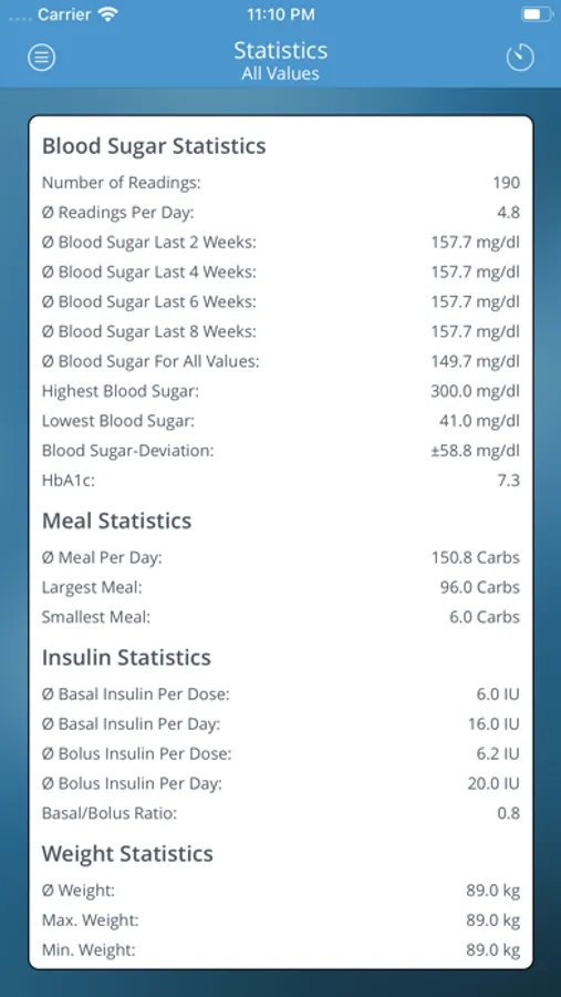 Nice and clear graphics and statistics help to get a perfect overview of your current diabetes therapy.