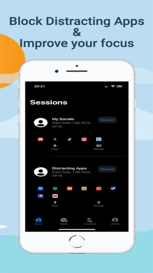 With Limit Socials - App Blocker, you can restrict distracting apps like Instagram, TikTok, Facebook, Reddit, Snapchat, X(Twitter), and more in one tap, putting an end to endless scrolling.