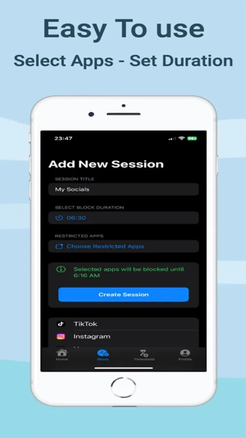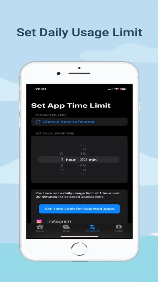 Automatic Blocking: Once you reach your daily limit, the app blocks access to the designated apps for the rest of the day.