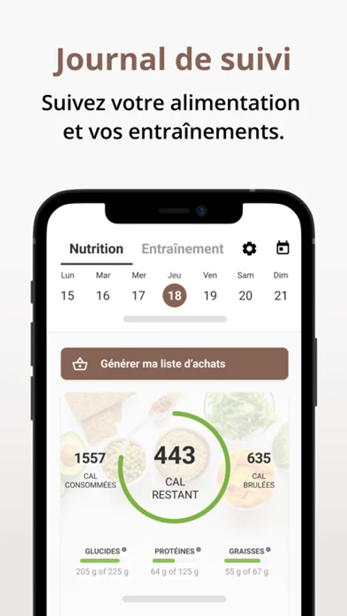 - Atteignez votre objectifs nutritifs à l’aide du compteur calorique