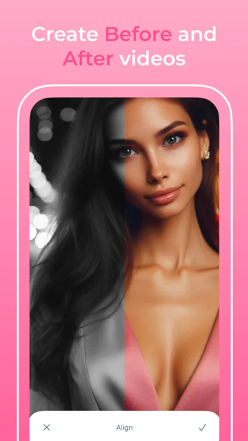 Unleash your creativity with our powerful Before & After Video Maker! Whether you're showcasing a transformation, flaunting your photography skills, or simply having fun, this app is your go-to tool for creating mesmerizing video transitions in just a few taps.