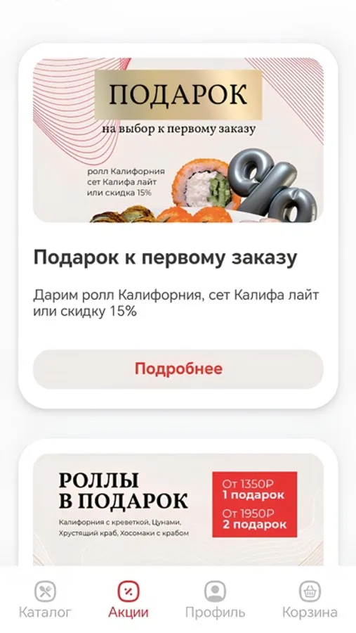 В нашем меню вы найдёте сеты, роллы и ещё множество всего вкусного. Скачайте приложение и убедитесь сами!