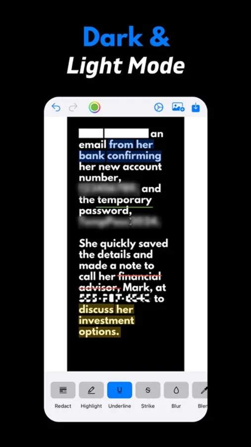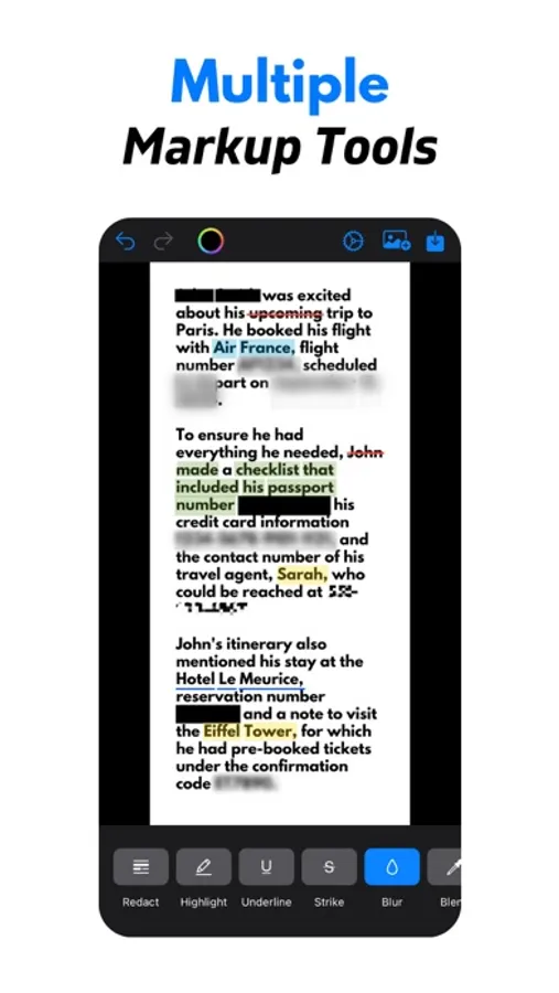 - Strike Through: Remove sensitive text while keeping the context intact.