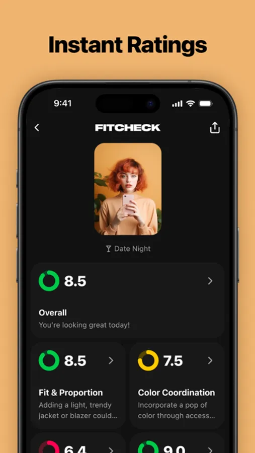 Scores and feedback are based on four key categories: fit & proportion, cohesiveness, color coordination, and trend alignment.