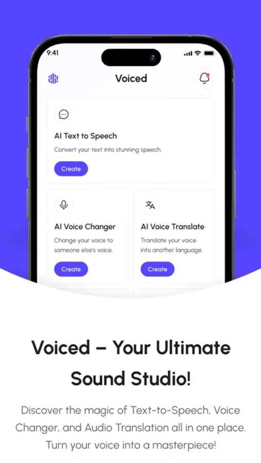 Unlock endless creative possibilities with Voiced, the all-in-one app for Text-to-Speech, Voice Changer, and Audio Translation. Whether you’re a content creator, a storyteller, or just someone who loves experimenting with sound, Voiced is your go-to app for everything audio.
