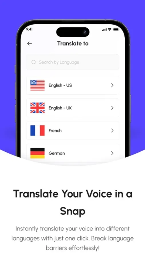 Communicate across languages effortlessly. Instantly translate your voice into different languages and break down language barriers with ease.