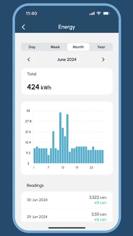 View real-time energy consumption or delve into detailed historical graphs. See the immediate impact of turning on a device and become your own energy expert by comparing data across days, weeks, and months. Analyse your energy patterns and make informed decisions to optimise your consumption.