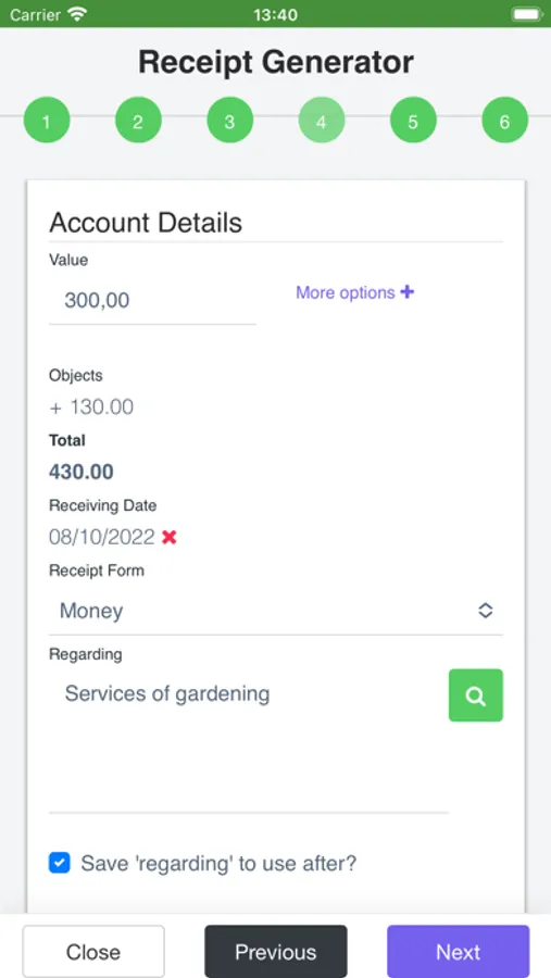 Save receipt description to reuse in others.