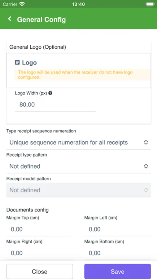 Available types of receipts: