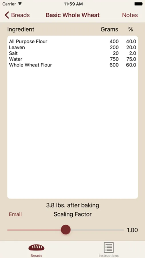 •Export a bread recipe to an iPad running its Artisan Bread app