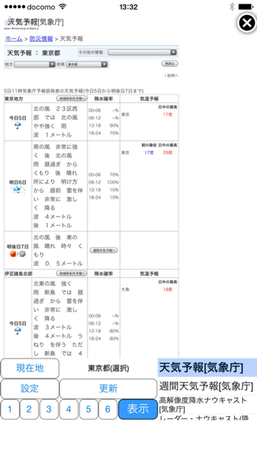 周辺便利天気は気象庁の防災情報、天気予報、週間天気予報、