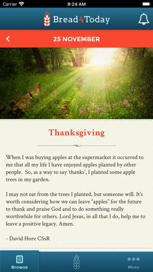 Bread 4 Today is as a free, accessible meditation aid which people can use to come closer to God and effect positive change in their lives and their community.