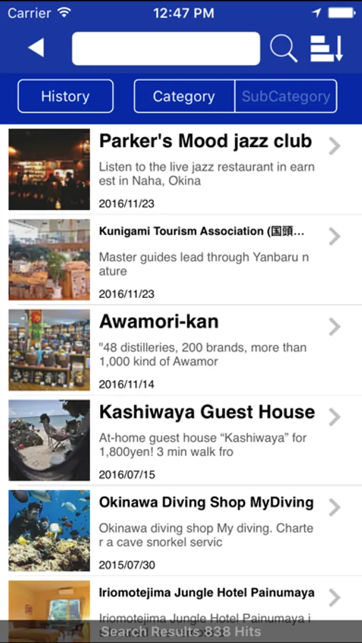 ・Detail screen provides introductions, related website URL, directions, and some even shows videos.