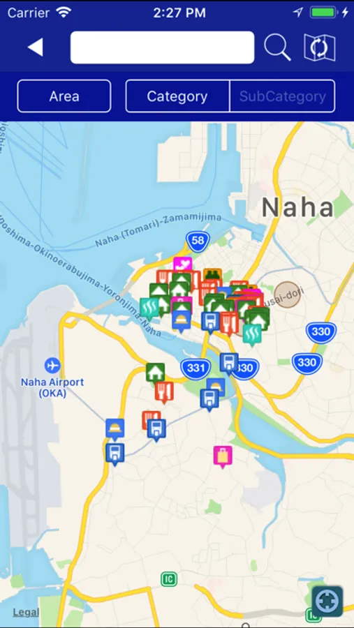 "Trace of your journey function": Displays your trace of Okinawa trip automatically on the map.