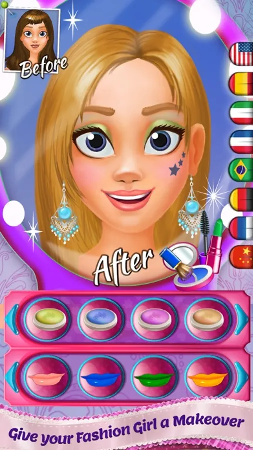 > Choose their lipstick, mascara, eyeliner, and hairstyles!