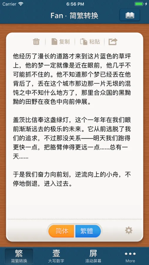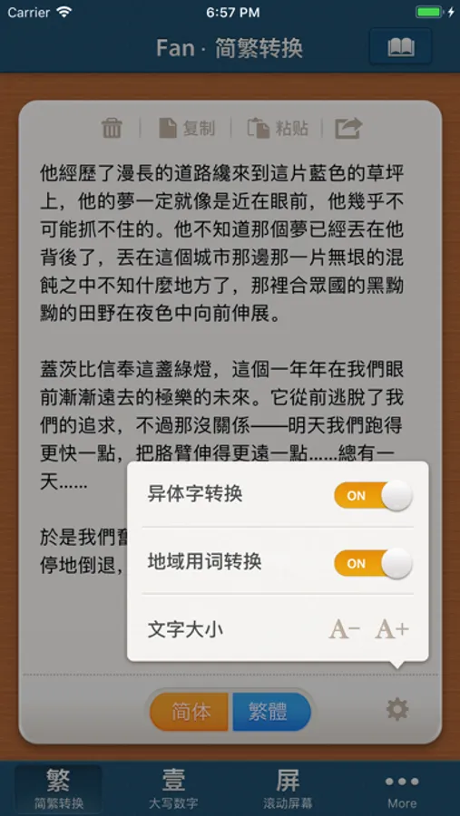 「Fan · 繁」是一个功能强大的文本工具,可以帮助你进行简繁转换、大写数字转换、长微博发送等日常操作。更让人惊喜的是文字大屏幕功能,可以将输入的文字以最大字码在屏幕上滚动播放,无论是机场接人,还是演唱会应援都可以轻松搞定。