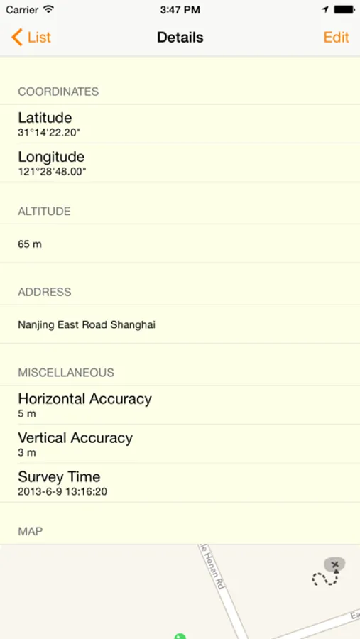 This application is primary used to measure coordinates of WGS84. It provided two different format of coordinates - decimal degrees and degrees-minutes-seconds. All measure data could be exported as a csv file for post process.