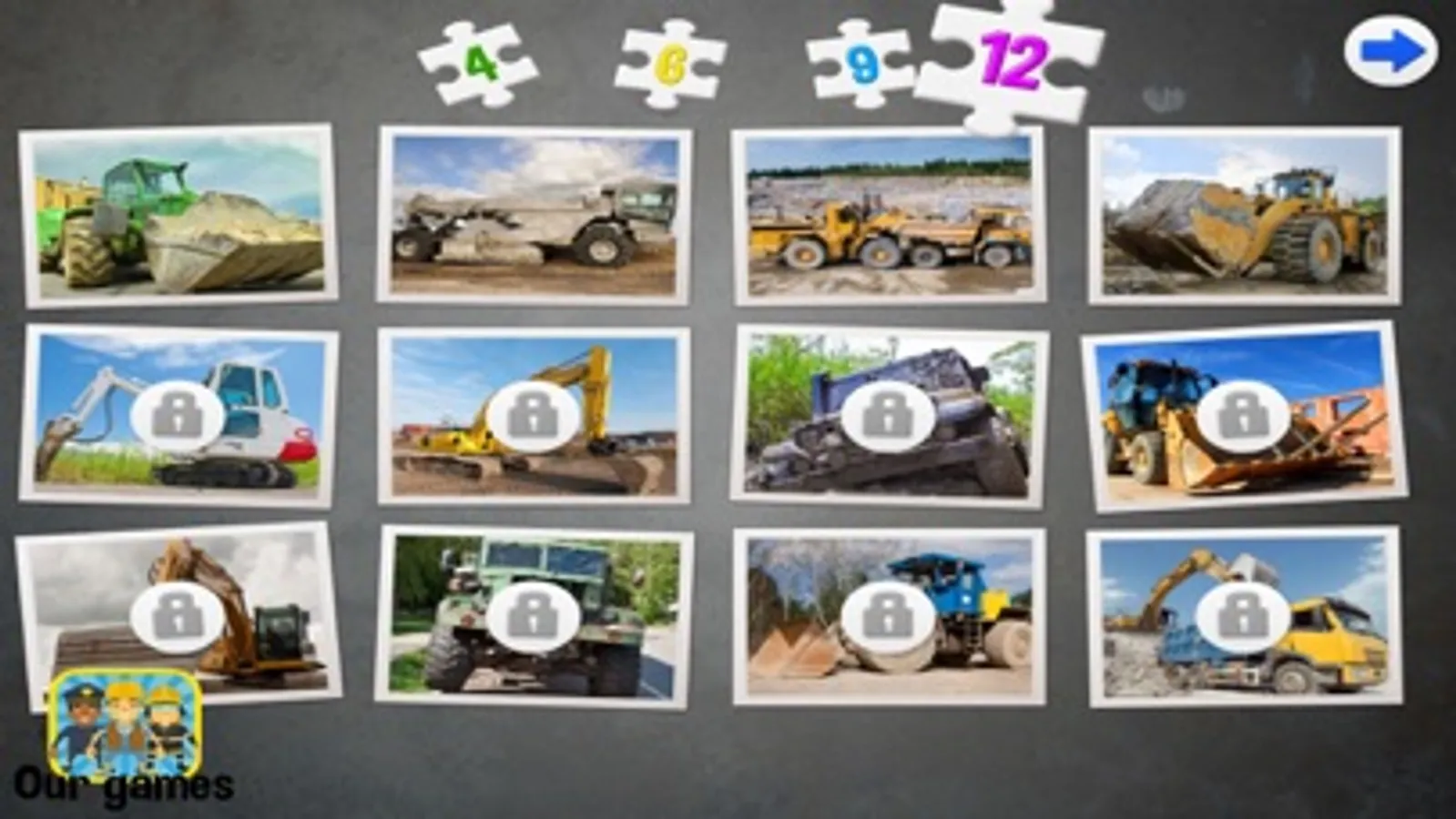 There are 24 different trucks to choose from and 4 different puzzle levels available to fit children and