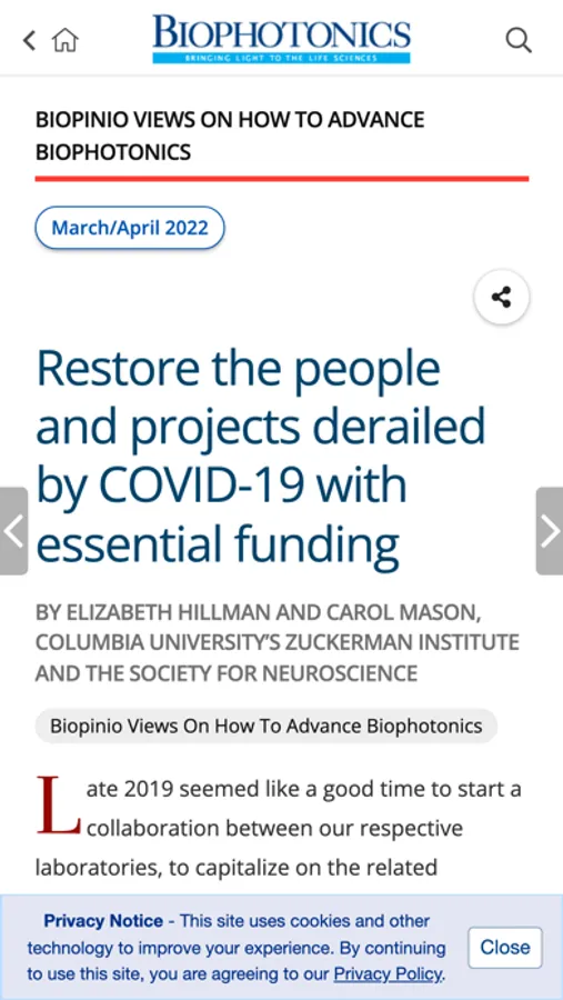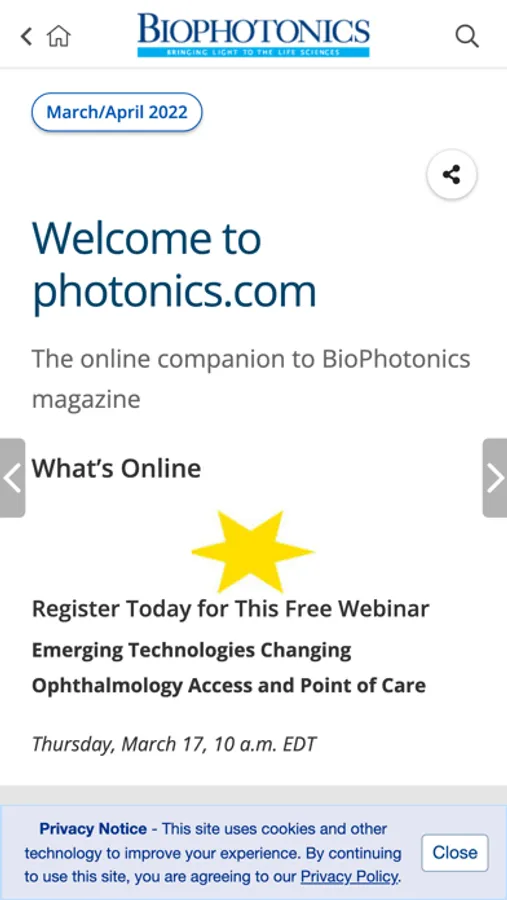 BioPhotonics, the world's leading magazine covering light and the life sciences, is also available as a mobile app. Features include the ability to: