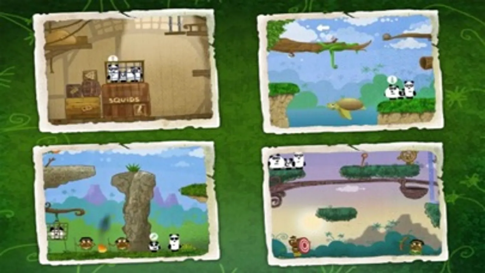 Each panda has unique abilities, they must escape captivity before leading them on a wild journey, control the pandas with your finger and use their unique abilities to guide them along their adventure. Tap on a panda to display his ability, and then tap on the ability to perform the action.