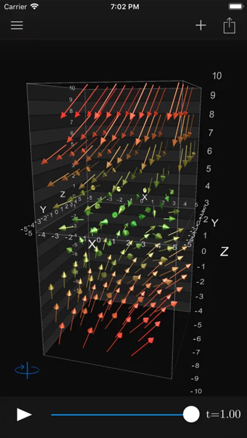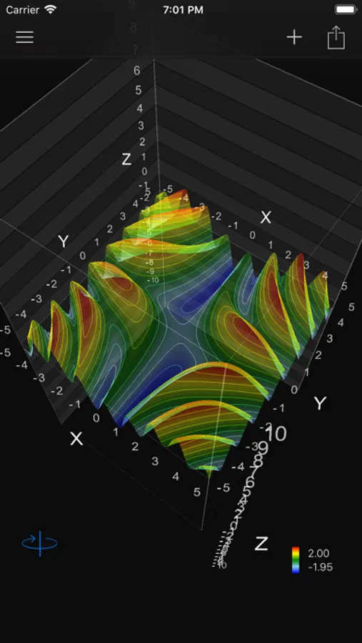 Visual Math 4D is a graphical calculator that allows you to visualize and solve your mathematical equations. It supports various types of equations, such as polar, spherical, parametric and implicit equations, which can be visualized and animated in 2D and 3D. You can also plot and animate vector fields in 2D and 3D.