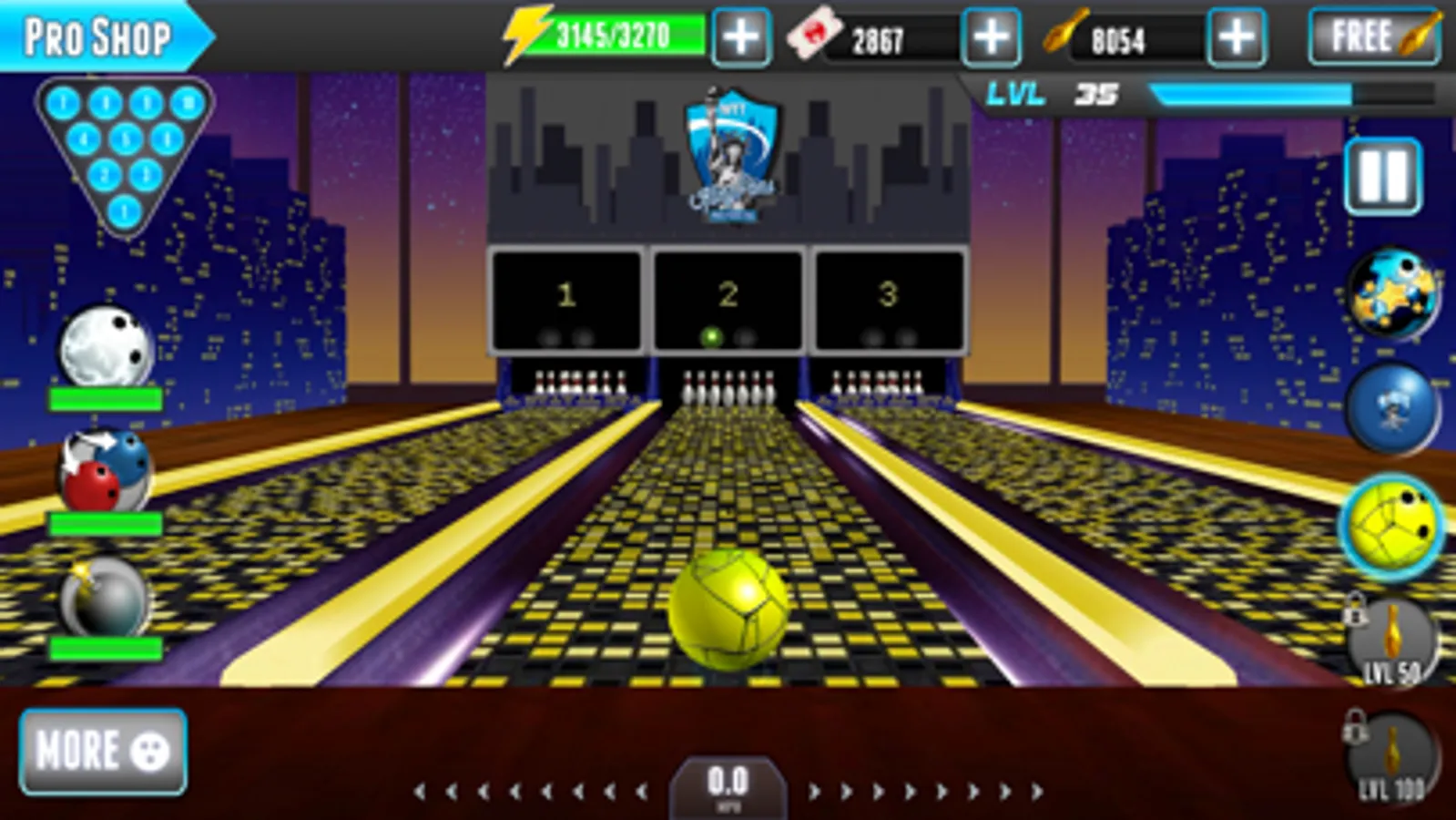 - Over 100 different bowling balls with unique stats!