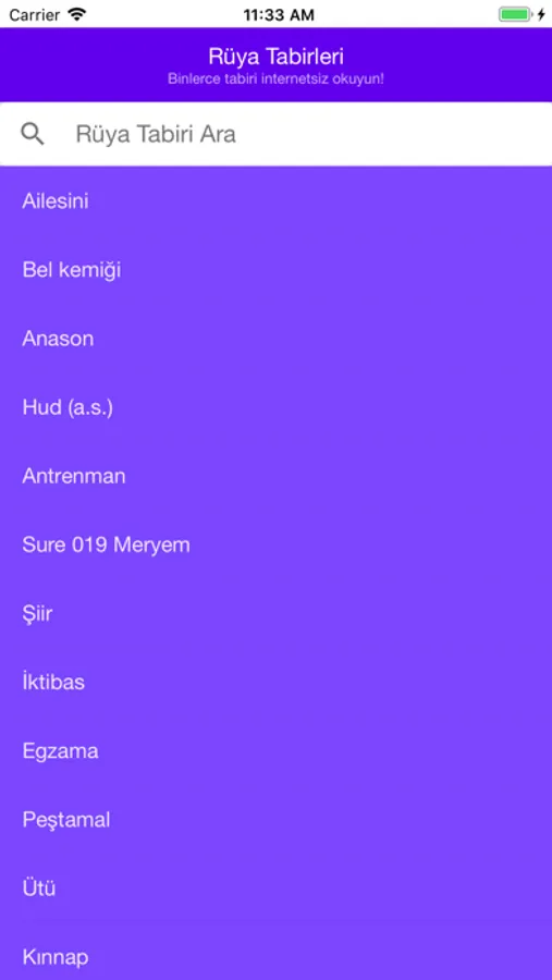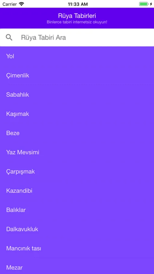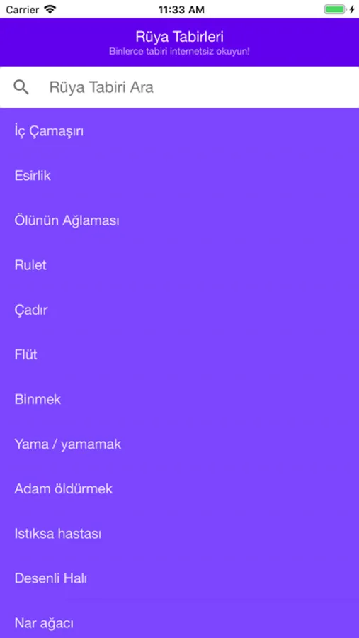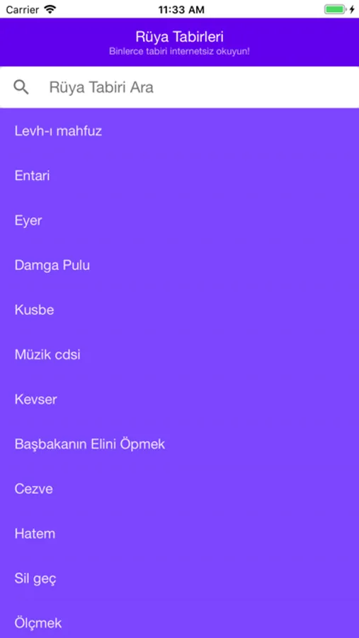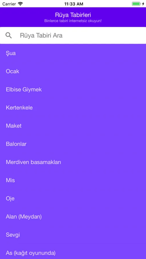 •Arama kısmını kullanarak rüyanızda gördüğünüz nesnelerin yorumunu bulabilirsiniz.