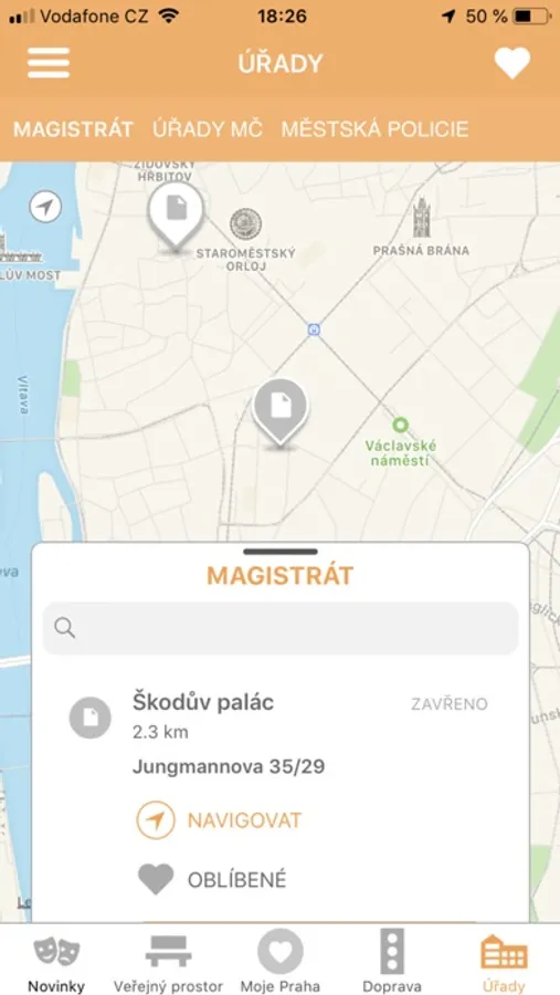 Cílem aplikace Moje Praha je je usnadnit všem občanům orientaci v městském prostoru. Aplikace využívá pražská otevřená data a zpřístupňuje je občanům v elegantní, přehledné a použitelné podobě. Poskytuje dopravní informace, kulturní aktuality, kontakty a otevírací doby na úřady, knihovny, lékárny a zdravotnická zařízení a mnoho dalšího. Vše s možností ukládání do oblíbených či navigace na místo.