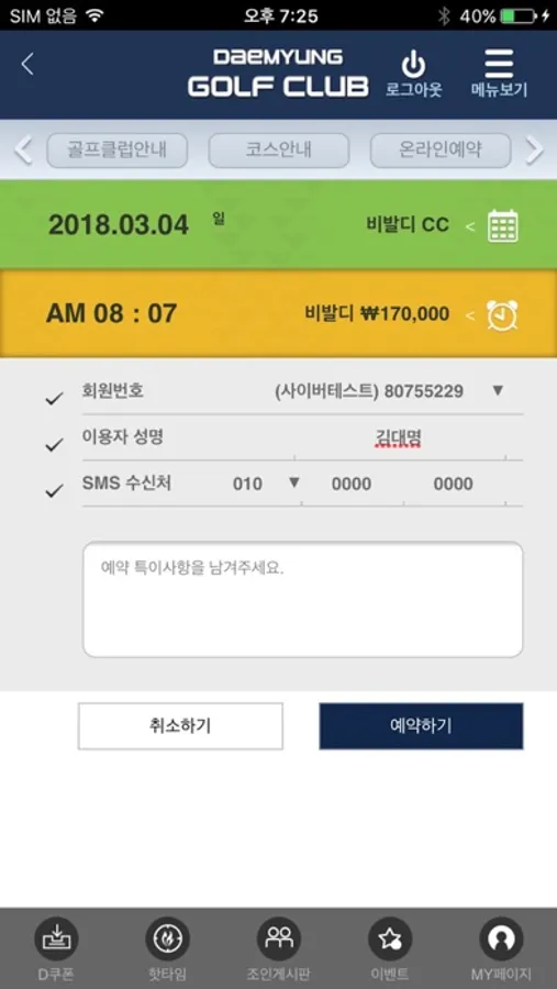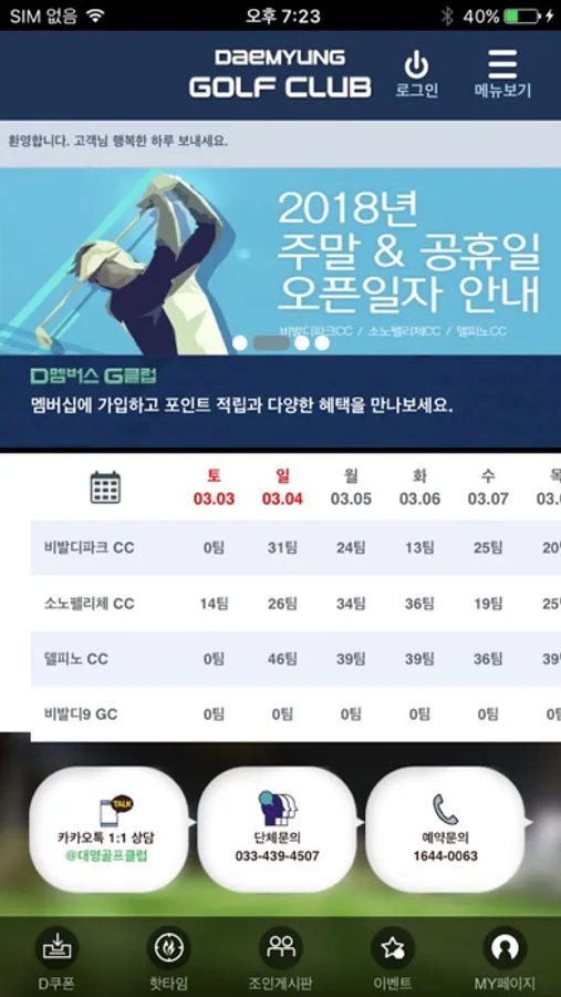 D포인트. VIP 포인트, 예약조회, My쿠폰 조회서비스를이용하실 수 있습니다.
