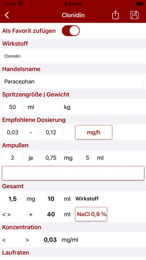 App zur Berechnung der Laufrate von Perfusoren in der Intensivmedizin.
