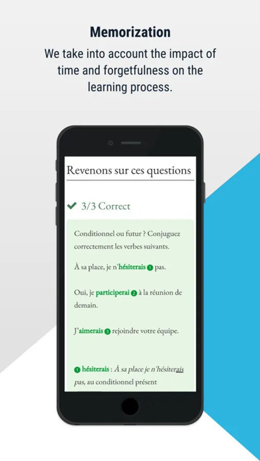 Tailored Corrections: After clicking the 'send' button, you will receive a correction with your daily score, explanations of your answers, scripts of dialogues or videos, the vocabulary you have requested and more.