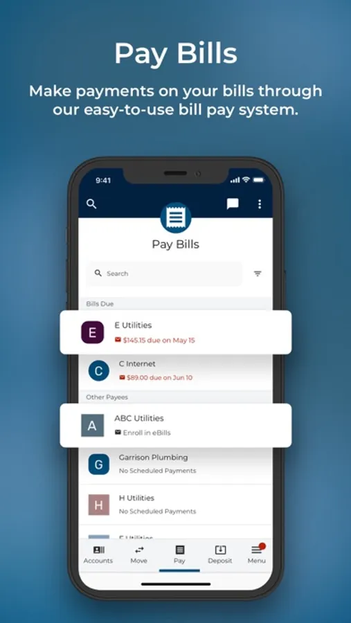 Bill Pay - Schedule or manually make payments on your bills through our easy-to-use bill pay system.