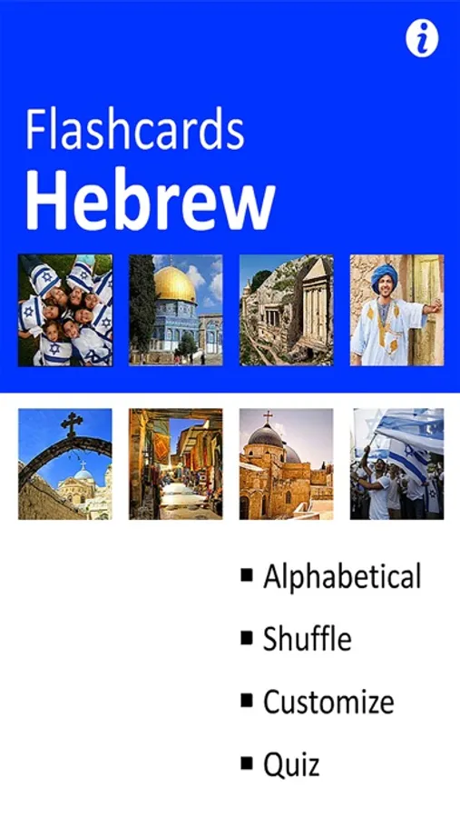 This app is for those who are interested in learning Hebrew alphabet and pronunciation. The front side of the card displays a Hebrew alphabet. The back of the card displays the pronunciation and a mnemonic clue. Ideal for beginners who wants to learn Hebrew in an easy way.