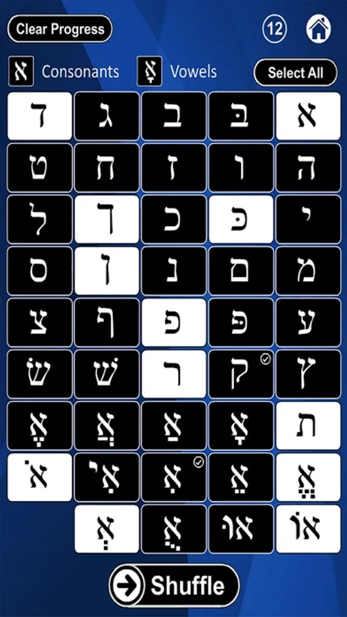 - Customize the range of alphabets being displayed (31 consonants and 13 vowels)