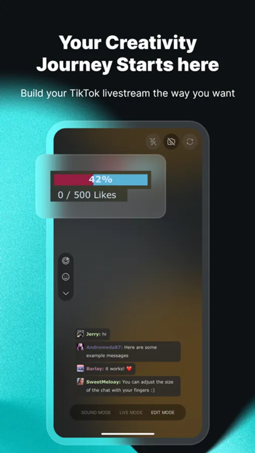 What was previously only available on desktop is now finally available on mobile! TikFinity Mobile lets you integrate Sound Alerts, Text-to-Speech (TTS), and popular widgets like Goal Bars, Emojify, Chat Widget, and more directly into your TikTok live streams. Customize everything on your phone – from colors and text to design and placement – and instantly project it into your TikTok stream.