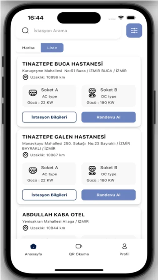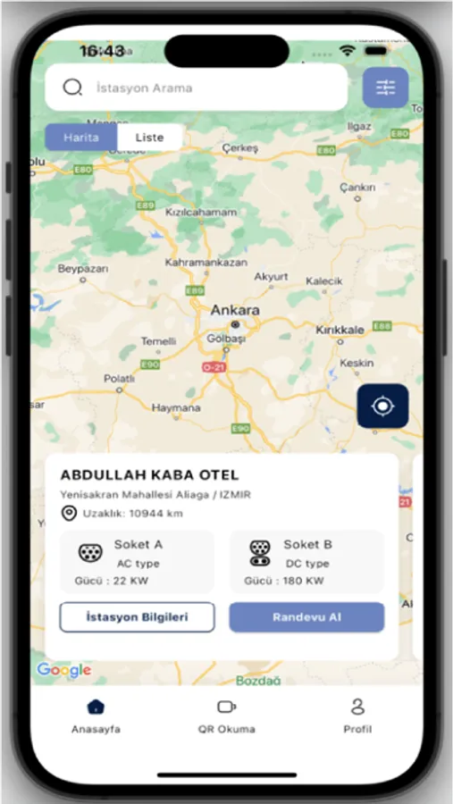 Şarj İstasyonu Görüntüleme: Yakınınızdaki şarj istasyonlarını görüntüleyebilir, uygunluklarını kontrol edebilirsiniz.