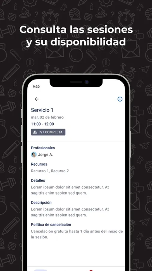 • Consulta las sesiones que ofrece el centro, así como su disponibilidad.