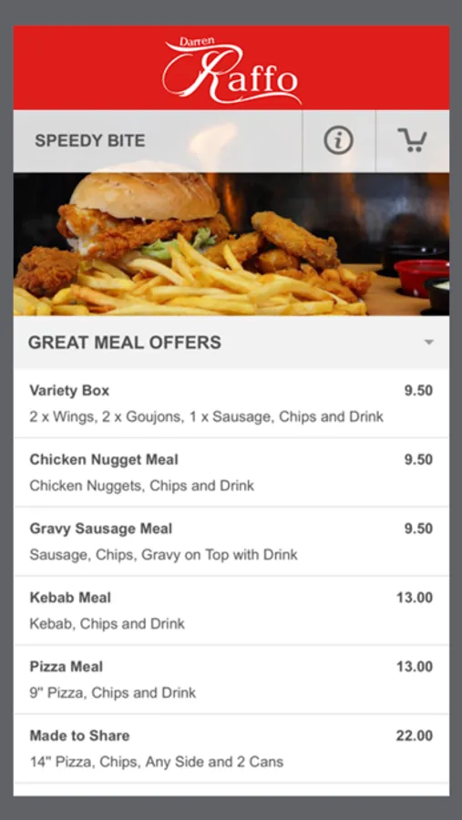- Online food ordering optimised for your mobile device.