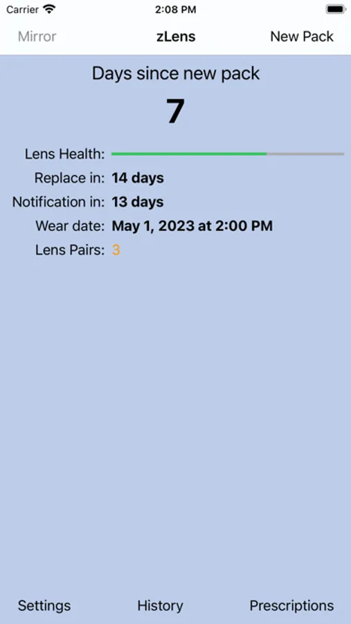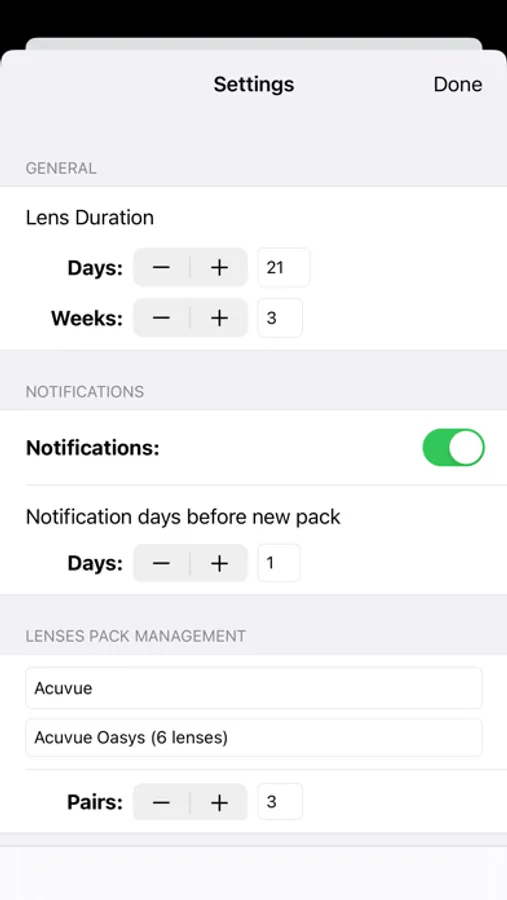 Manage your contact lenses usage and get a notification/reminder when it is time to change them.