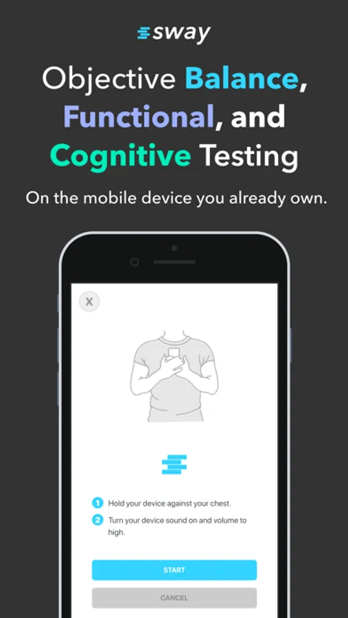 Sway is an FDA-cleared app that reinvents the way athletes and patients are monitored for signs of imbalance or delayed reaction. Using the built-in motion sensors of a mobile device to assess stability and reaction time, Sway enables health care professionals to objectively assess a patient's fall risk, track recovery from an injury, and detect instability from medication changes.