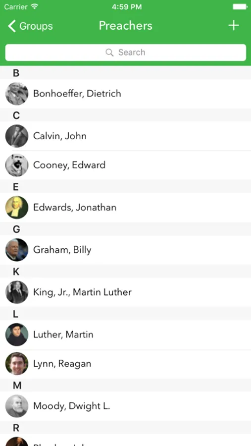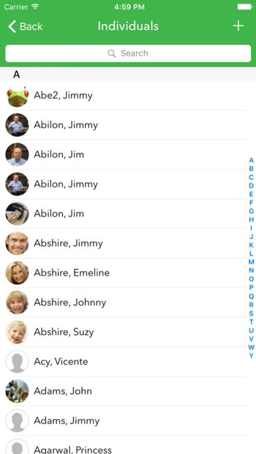 - View lists of all members and groups, complete with thumbnails of profile pictures.