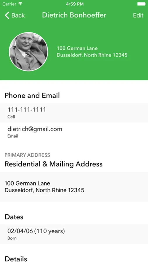 - View all information for a person. Including personal, contact, dates, custom fields, and family.
